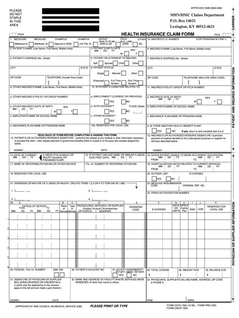 Health Insurance Claim Form Sample HCFA 1500 Claim Form